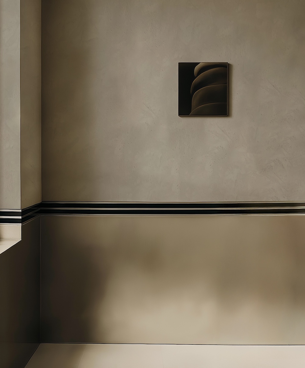 Die Oberfläche wirkt verbindend, fängt Licht in sanften Nuancen ein und gibt den Räumen Ausdruck, Tiefe und Charakter. Jede Fläche ist Ergebnis von kuratierter Materialästhetik: Sie lenkt den Blick, verstärkt Präsenz und schafft eine Atmosphäre, die lebendig, elegant und zugleich einladend ist.